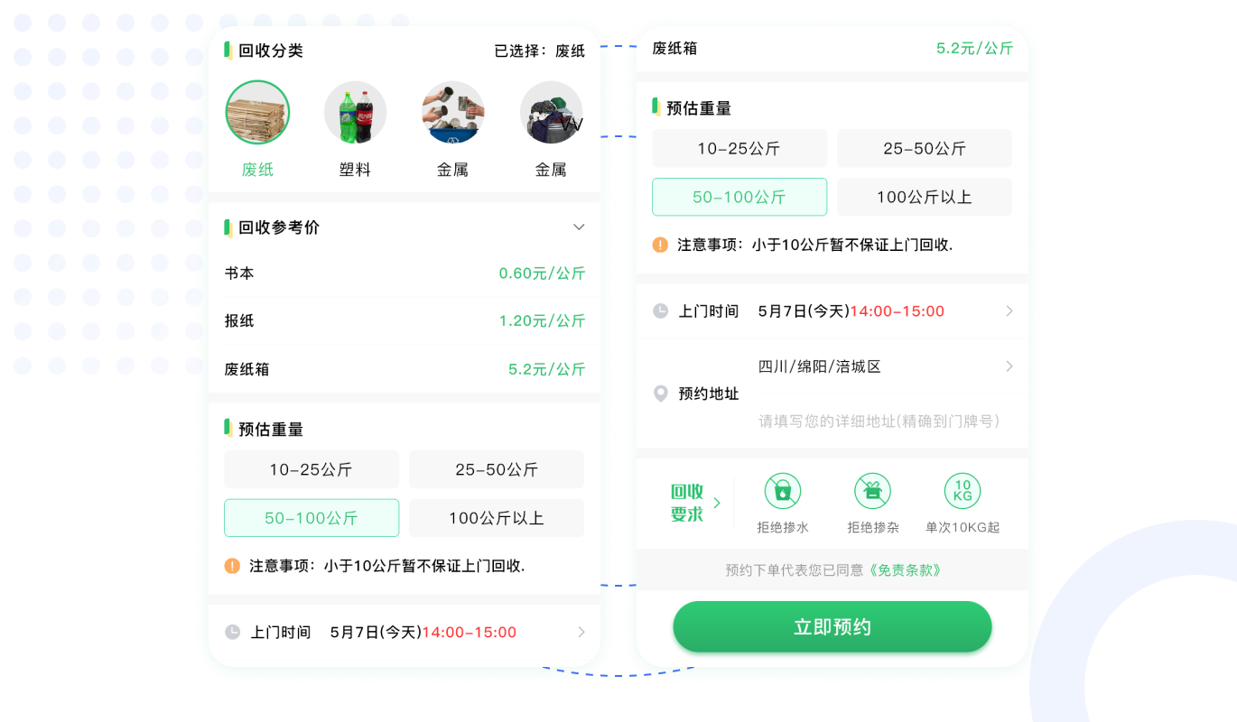 用戶一鍵下單回收,系統(tǒng)自動派單,回收員上門回收